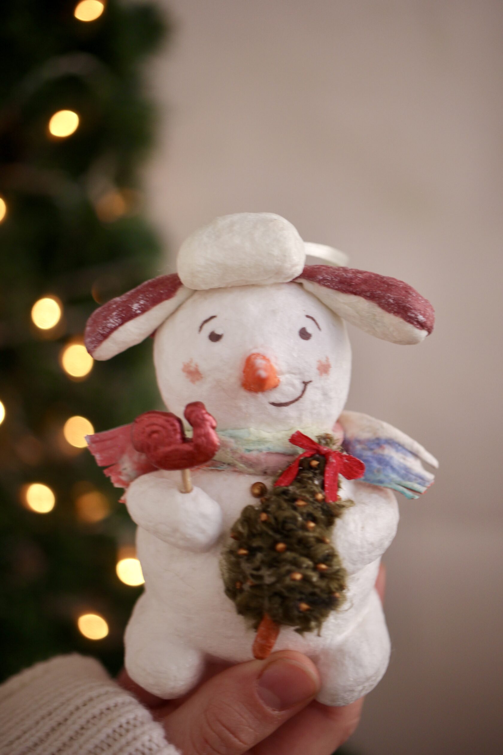 Размеры и характеристики: - высота - около 12 см - очень легкая - мягкая - не хрупкая, что особенно актуально для семей с маленькими детками) - сделана из ваты, клейстера и парочки секретов по старинной дореволюционной технологии - лучший подарок к Новому году и Рождеству! Мы ценим Ваше время, поэтому игрушка приедет к Вам в красивой подарочной упаковке с окошком, с визиткой и небольшой инструкцией по уходу, чтобы она могла радовать Вас долгие-долгие годы)