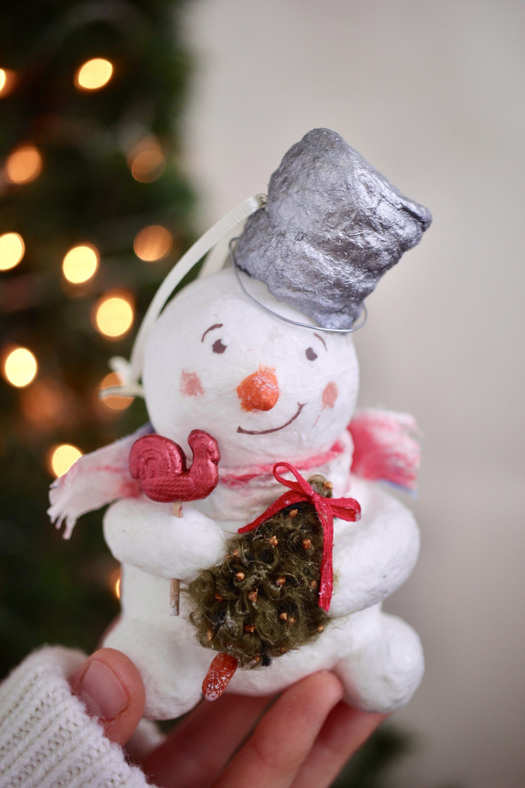 Авторская новогодняя игрушка из ваты ручной работы. Такая игрушка будет чудесно смотреться как на елочке, так и в качестве декора новогоднего интерьера.